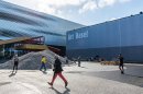 Alors que des VIP fortunés étaient invités à voir en exclusivité les oeuvres d'art contemporain les plus chères dans les salles imposantes de la foire Art Basel à Bâle, les employés de la foire d'art Frame, un kilomètre plus loin, s'activaient à nettoyer le sol. |